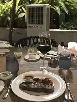 In the evening, we went to the hotel restaurant Marina Kitchen for dinner. Because we were dining with our dog, we could only sit outside.