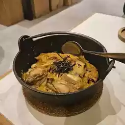 The restaurant has a huge sign at the entrance, with green plants hanging on the door. The interior is decorated with camping facilities and tools, including iron cups for dining, creating a natural atmosphere. The lunch is very cost-effective, costing about a hundred yuan, and you can add soup and salad. The overall taste and feeling are good.