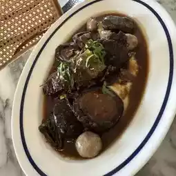 A selection of the lunch menu, with generous portions. The starter for two includes chicken salad, the meat is tender. The square Roman pizza is unique and very crispy. The main dish is beef breast, which melts in your mouth. The bacon pasta is very chewy and a good choice. After the main course, there were four desserts, but I was too full and had to take them away. With the addition of a pot of English breakfast tea, this lunch completes the meal with generous portions and great overall food taste.