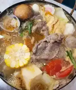 Sha tea pot is the first choice for not eating spicy, originally sand tea is not considered hot pot sauce, but with the change of times, sand tea sauce became the standard equipment of hot pot, used as a soup is more excellent! Meat slices, rice blood cake, beef balls, sand white, corn, mushrooms, fried bamboo shoots, Naruto rolls, flower balls, leeks, tomatoes, the bottom of the pot is very rich and delicious, I like to stir the ingredients slightly, so that all the ingredients are covered with fragrant soup before eating ~ plus the potato flour and vermicelli in the pot together, full and delicious (You can choose to accompany the meal or rice, choose the stewed pork rice!)