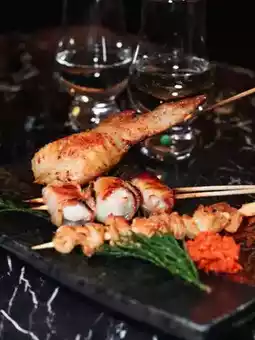 Ordered 3 types of skewers✨ The most special is the foie gras stuffed Nagoya chicken wings, with tender meat and a savory and delicious foie gras filling😍 The chicken skin is crispy and oily, perfect with drinks☺️ The black pork lychee roll is very juicy, and the sweet and sour taste of lychee helps balance the greasiness –