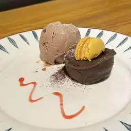 Of course, we had to end with dessert. We chose a molten chocolate cake with ice cream to conclude our meal🤗