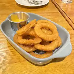 We first ordered an appetizer, fried onion rings with cheddar cheese sauce🤗. The onion rings were fried to a perfect crisp and were deliciously hot.