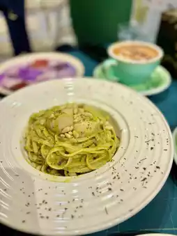 We ordered cappuccino and latte☕️ respectively. The latte art was beautiful and it was a very sincere cup of coffee. We also ordered pesto pasta 🍝, French fries 🍟 and tiramisu dessert. Each dish was rich in flavor and we could feel the careful preparation of the restaurant. Tiramisu has just the right sweetness, not too sweet, which makes us end this gourmet meal perfectly😋.