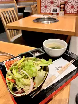 White Valentine's Day, must go find some good food to celebrate it, I found some information online and decided to go to this, Japanese barbecue restaurant, we chose two lunches, the package will have appetizers, salad and hot soup ~