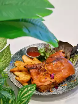 🪐Black beer suckling pig with potato chips