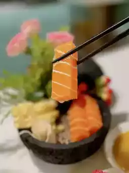 In addition to salmon, there are also bacon slices, dry ice smoking shape is quite frame salmon made of jellyfish 🐟 looks quite confusing real soft taste 99% similar to real fish meat only poor oral grease feeling absolutely suitable for some friends who want to lose weight
