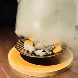 Specialty snacks with a smoky effect, cheese marinated with a secret sauce, very Creamy after baking, and served with crispy fried seaweed, both with a smoky woody aroma, very delicious