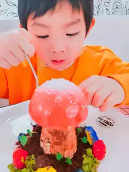 Immediately gave him a red mushroom 🍄 dessert