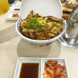 The set meal includes a large bowl of rice, so there is no need to order extra white rice. The pork neck is plenty and chewy, the Korean hot sauce is slightly spicy and flavorful, and it is very rich with the burnt hamburger steak 😁