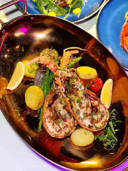 The plump and juicy Australian lobster is tender and sweet. The lobster meat can be easily removed, and the lobster head paste has a slightly sweet fragrance. The roasted potatoes are very dense, and there are also juicy cherry tomatoes and eggplants.
