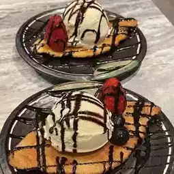 This dessert is eye-catching. The ice cream is served with a croissant-like biscuit, plus fresh fruits such as strawberries. It has a crispy texture and rich flavor.