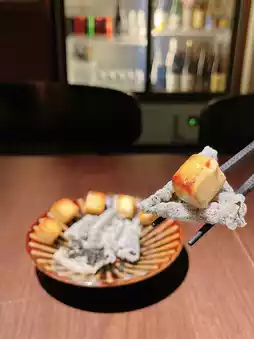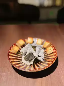 Smoked cheese with apple wood 🧀️ is very stylish when served. The savory cheese grains in the fried seaweed bun are definitely the best companion for supper with wine
