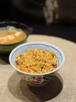 The fried rice is rich in ingredients, fried dry and well-defined, and it tastes full of pan 😋