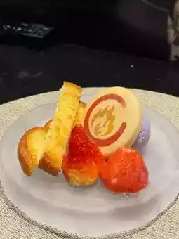 Dessert is very characteristic, with caramel toast, blueberry ice cream and strawberries🍓 The strawberries are full of cheese😋