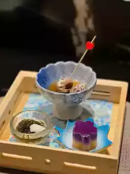Appetizers include purple sweet potato golden hour, water cloud, sweet wine black plum