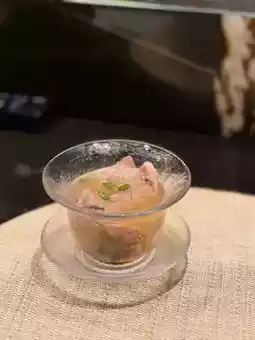 The soup is made with jasmine tea and wood fish soup. It tastes sweet and delicious!