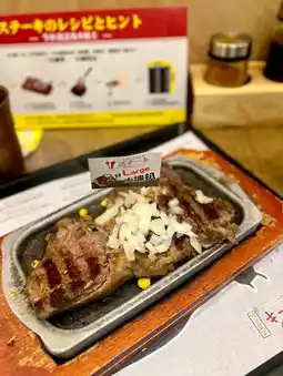 Served with: raw onions, this steak is of better quality, full of meat flavor.