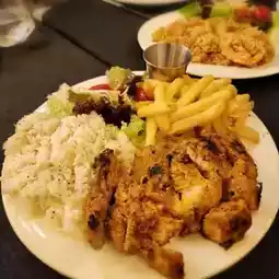 The charcoal grilled chicken was very juicy, rich in vanilla flavor, with oil rice, salad and french fries, a little spicy, if you do not eat spicy, remember to tell the clerk to leave the spicy.