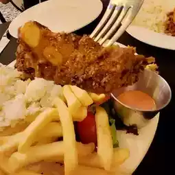 The charcoal grilled pork bones were very tasty, full of vanilla aroma, but more boney, with oil rice, salad and french fries, a little spicy, if you do not eat spicy, remember to tell the clerk to leave the spicy.