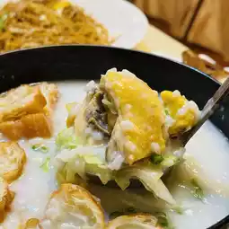 The congee is smooth and smooth, while retaining the flavor of rice. It is served with rich chicken pieces. The chicken meat is plump and tender, which makes the congee full of chicken oil flavor. The fried dough sticks and shallots make it even more delicious
