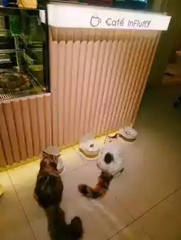 🌳The tree is 🐱 @cafe_influffy.hk idyllic style, simple and tidy interior design, sufficient lighting, ideal hygienic environment, no smell 🐈 Cats visually about more than ten, including a huge Maine Coon cat, employees said it weighs up to 15 pounds, very fat haha