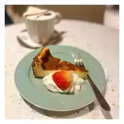 The surface of the cake is baked beautifully, full of charred flavor, and the inner layer of cheesecake is very fluffy, very moist and soft, 🧀 cheese taste is very rich, and it will not be too greasy ~ 🍰 The cake is also served with strawberries and cream, strawberries are very large and sweet!