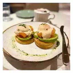 Eggs Benedict are so creamy!! 🥞It's a lot of portions, a total of 5 pieces of hot cake, in addition to smoked salmon and avocado, all very fresh!
