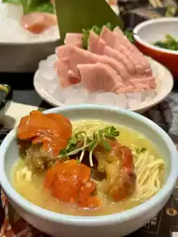 Before the sashimi was served, I had already tried chicken feet, duck kidneys, fish skin, snail meat, steamed fish, fried items, drunken abalone with Huadiao wine, and the must-try Hokkaido sea urchin sushi! It's worth mentioning that all the sea urchin here comes from Hokkaido, and it's definitely worth having a few more pieces!