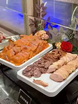 There are appetizers, seafood, hot dishes, dim sum, fruits, and more to choose from before the meal. The highlights include smoked salmon, smoked duck breast, and dried sausages.