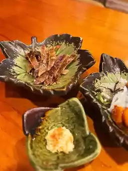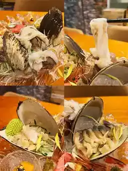 Rare sashimi options are available. It was my first time trying black abalone, which is small with a black shell and has a rich and extremely sweet taste; the torigai is thick and has a crunchy texture.