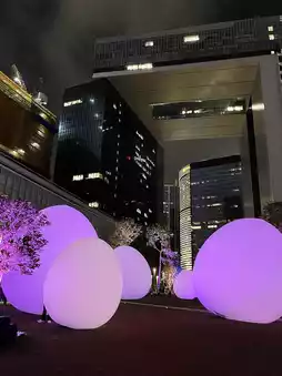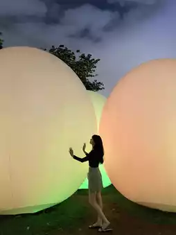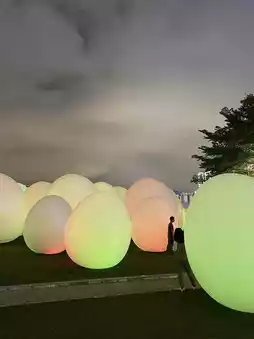 The hundreds of colorful luminous ovoids (egg-shaped objects) in "Continuous Standing Life" change colors and sound effects as they interact with the audience🥚 And the "Echoing Tree" allows dozens of trees in the garden to echo the ovoids , constantly changing light color and tone🌳