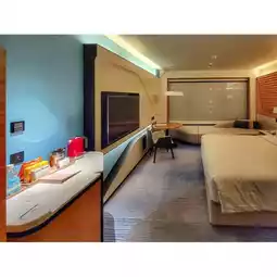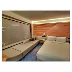 The hotel has a lagoon-themed swimming pool with adult, children's and toddler swimming pools, perfect for the whole family to play in the water. In the middle of the hotel lobby is a 16-meter-high cylindrical fish tank spanning 3 floors, which contains over a thousand fish.