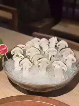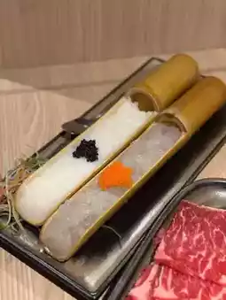 This issue's seasonal food has fresh sea crayfish & shiitake mushrooms! The crayfish is served on ice, it tastes so fresh! The mushrooms are big and nutritious! There is no shortage of beef in hot pot. Angus beef wings & American beef tendon are each ordered half portion, put in the spicy soup to eat very delicious! Hand-beaten squid rolls & hand-beaten fish roe shrimp rolls are real ingredients, both are very bouncy and filling