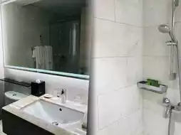 🛌 The new decoration of the hotel is a minimalist style, the tone is light, the items selected are mainly practical, the washroom is also relatively small, only shower facilities, no bathtub.