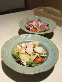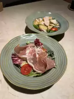 Parma ham is savory and savory enough to taste fatty. Served with salad vegetables, it is fresh and appetizing
