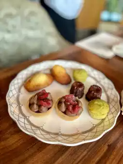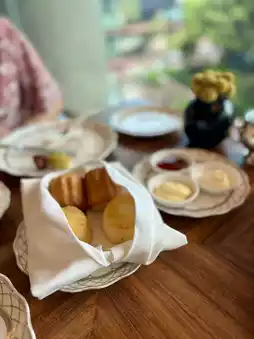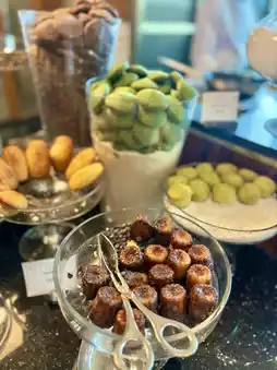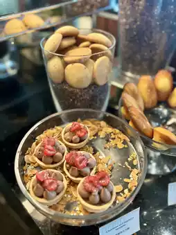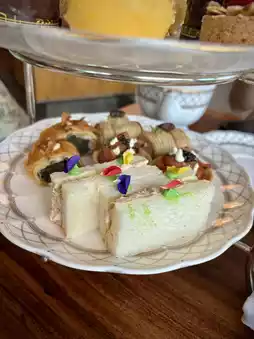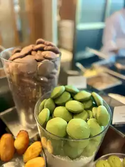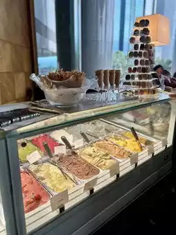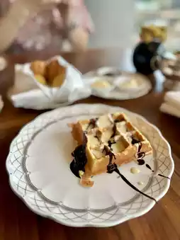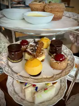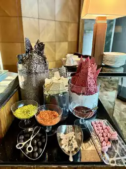 The themed afternoon tea is available from now until May 31. In addition to the three-tier stand, the afternoon tea set also includes raisin scones and vanilla seed cake with traditional English cream and jam (Raisin Scones, vanilla bean Gugelhupf), as well as a self-service/made-to-order dessert bar, including waffles 🧇, pancakes 🥞, homemade ice cream 🍦, fruits and cookies 🍪 and other desserts.