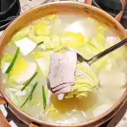 They have 10 kinds of soup 🥣 to choose from, spicy and non-spicy 🌶️ you choose, we chose the military village white jade pickled cabbage pot🍲, rich pork bone soup plus 🥬 pickled cabbage and pork slices, very refreshing😋 warm heart!