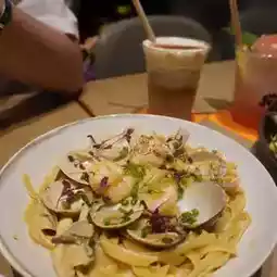 The pasta is creamy😋 There are also big mussels and big shrimp! The portion is quite large 👍🏻