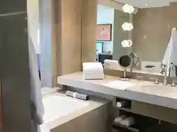 🛁🫧The bathroom was spacious, with separate wet and dry areas. The tub was huge, and there was plenty of room for standing in the tub. The bathing experience was fantastic. 👍🏻👍🏻👍🏻 You can even draw the curtain next to the tub and soak in the Victoria Harbour view. It was absolutely stunning. 😘😘😘