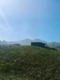 As you approach the summit, you see a spread of small stone houses on the hillside. These stone houses, known as 'Lantau Mountain Camp,' were built in the 1920s as holiday cottages for missionaries. From the hillside, you can enjoy a panoramic view of the grasslands and feel the mysterious charm of Sunset Peak.