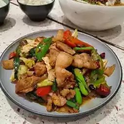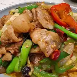 This dish is full of pan, the return pot meat after frying, emit a rich aroma, the aroma of bean paste and chili is especially prominent, the pork slices are crispy and plump, not greasy, green pepper, cabbage garlic and other crisp and fragrant, the hemp flavor of pepper makes the return pot meat more flavorful.
