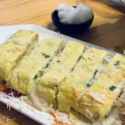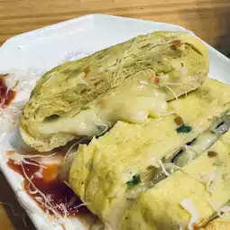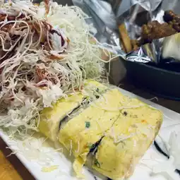 Once served, the cheese egg rolls were very Jumbo, with a huge amount of cauliflower salad on top, with salad dressing and ketchup