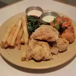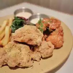 The table is still very hot😍 Each has 3-4 pieces, the portion is not much, but quite sincere ~ Cheese fried chicken covered with cheese powder, salty and sweet; another garlic honey aroma full, full of honey sweet taste🤤 And each piece is fried very crispy outside, chicken inside remains juicy, two fried chickens are good🥰 Accompanied by French fries, and two sauces can be ordered fried chicken!