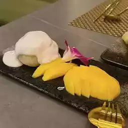 The mangoes 🥭 are so fresh! A bite of glutinous rice and a bite of mango with coconut juice is perfect!