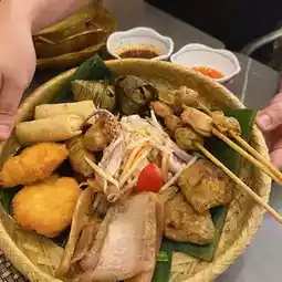 Very rich, lots of food, there are leaf wrapped chicken 🐣, fried shrimp cake 🍤, spicy fish cake 🐠, satay beef skewers 🍡, vanilla pork sausage 🥓, lemongrass neck, squid salad 🥗 enough for 2 people 👍🏻 Basically 2 people after eating this is already very satisfied!