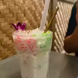 Colorful three-color ice, coconut flavor is very strong 👍🏻 plus there is three-color ice bite refreshing!