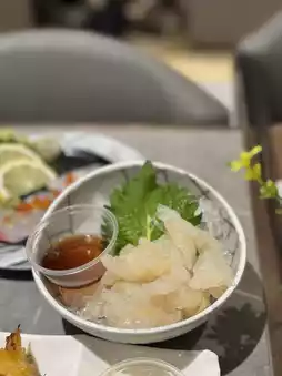 Let’s eat the sashimi first! The presentation is beautiful! All thickly cut into large pieces! Soft and sweet shrimp, and huge sweet red shrimp, tiger shrimp are more refreshing, herring crisp and sweet, salmon thick cut, matsutake crab will not die salty, and with vinegar to neutralize the greasiness. The most unexpected was the king of fish in the grapefruit sauce pool, thinly sliced and translucent, served with salmon roe, sweet and soft, good.