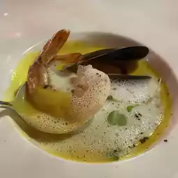 The seafood soup looks clear, and evaporates a hint of seafood sweetness when you drink it.