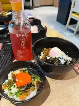The buffet area has a variety of canned soda, bottled cold tea and juice, various vegetables, and homemade cherry blossom shrimp bibimbap😋 Now Anping Dream King's birthday limited, choose SRF ultra-black Wagyu or M5 Wagyu meal package will be additional Dream King series, we chose Dream King hot spring eggs and Dream King raw eggs, used to mix rice to eat great😍